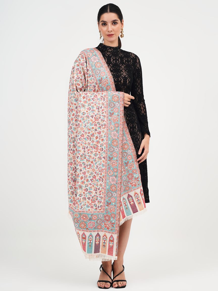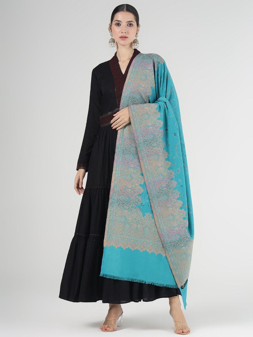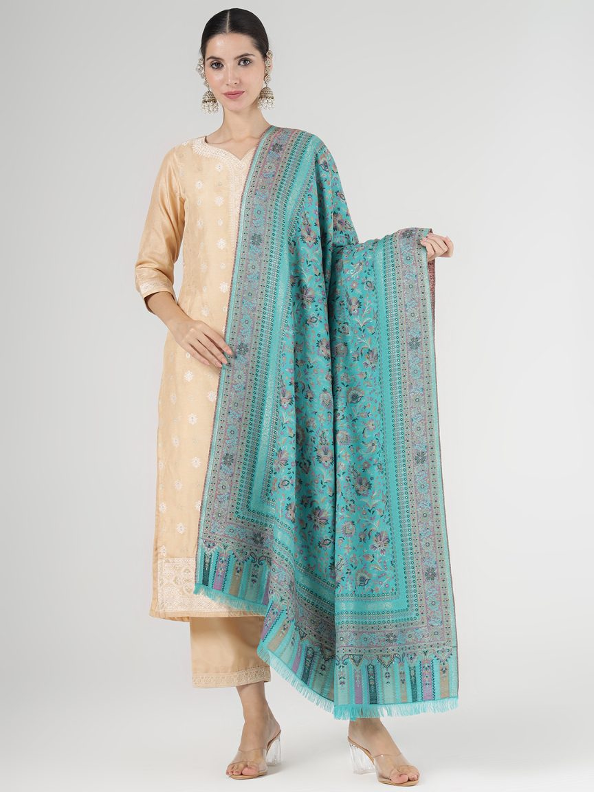 Faux Pashmina Traditional Jamawar Multy Shawl - Icy Blue | Full Size, Extra Soft
