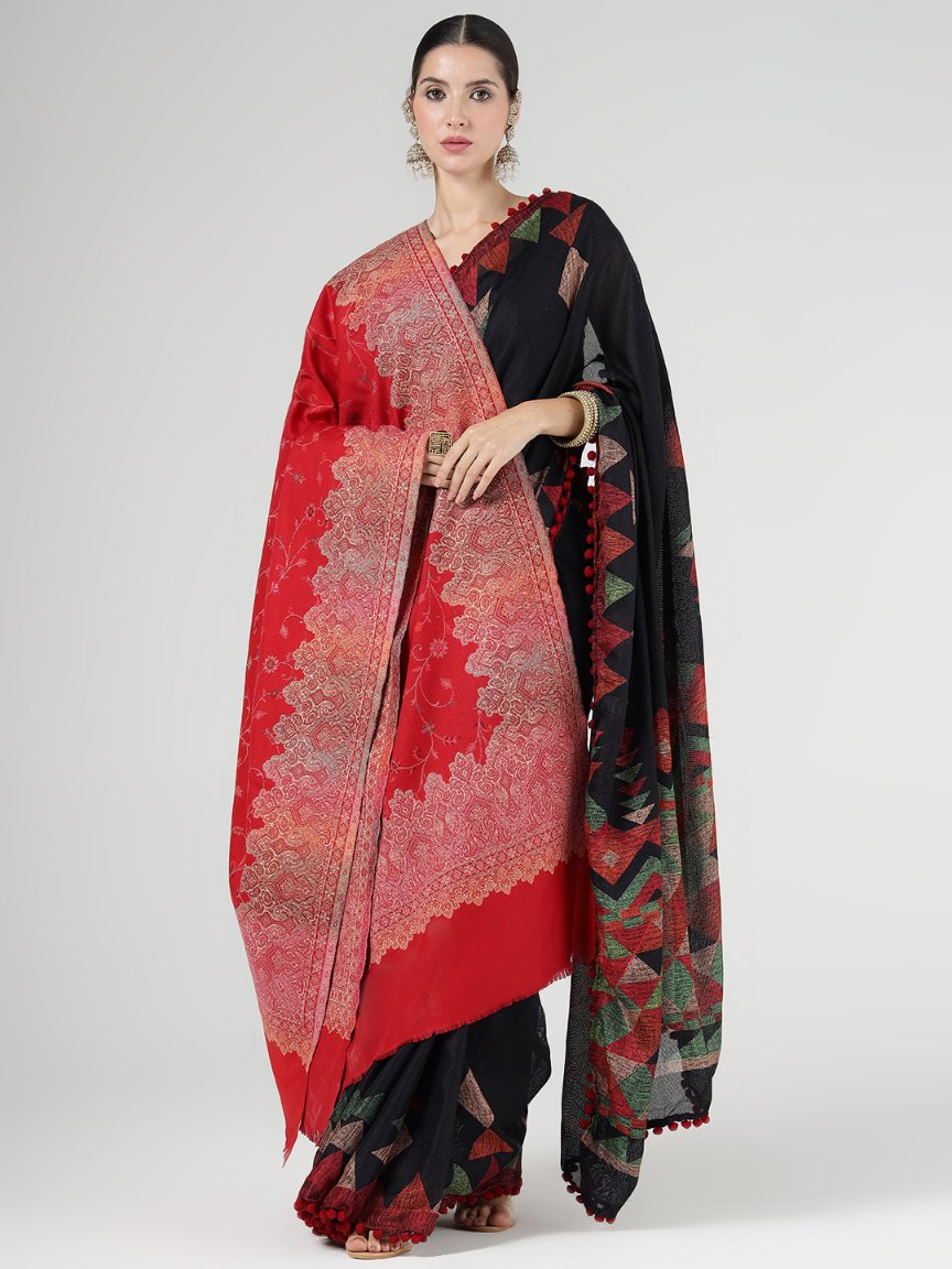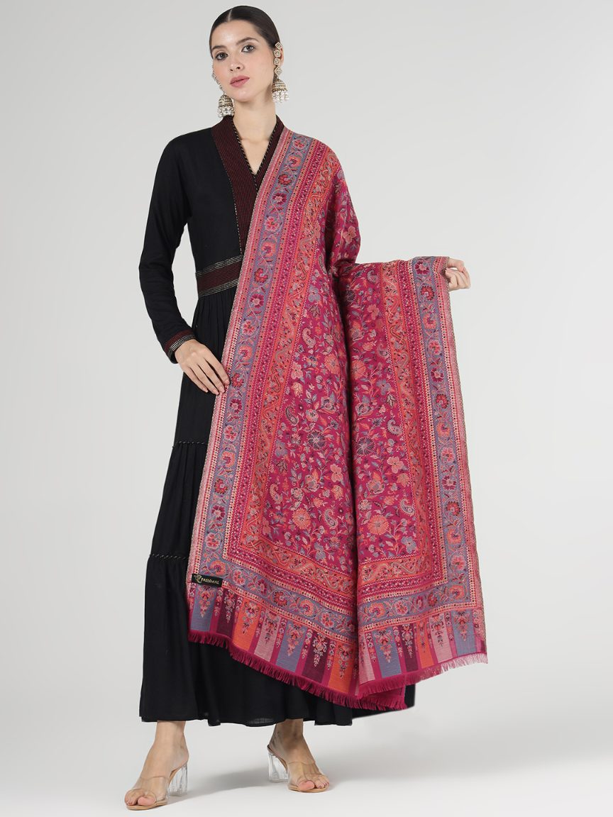 Antique Kashmiri Kani Stole with Sarvosk for Women - Crimson Radiance