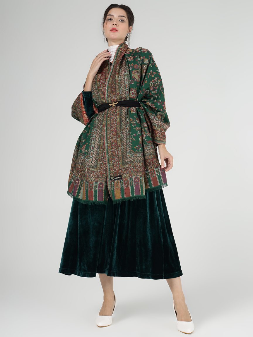 Soft Bamboo Modal Shawl with Zari for Women - Emerald Elegance