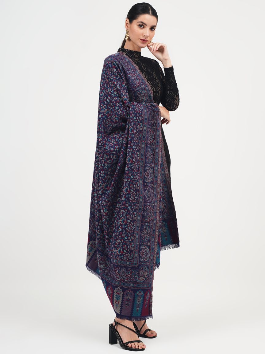 Faux Pashmina Traditional Paisley Jamawar Shawl - Midnight Grace