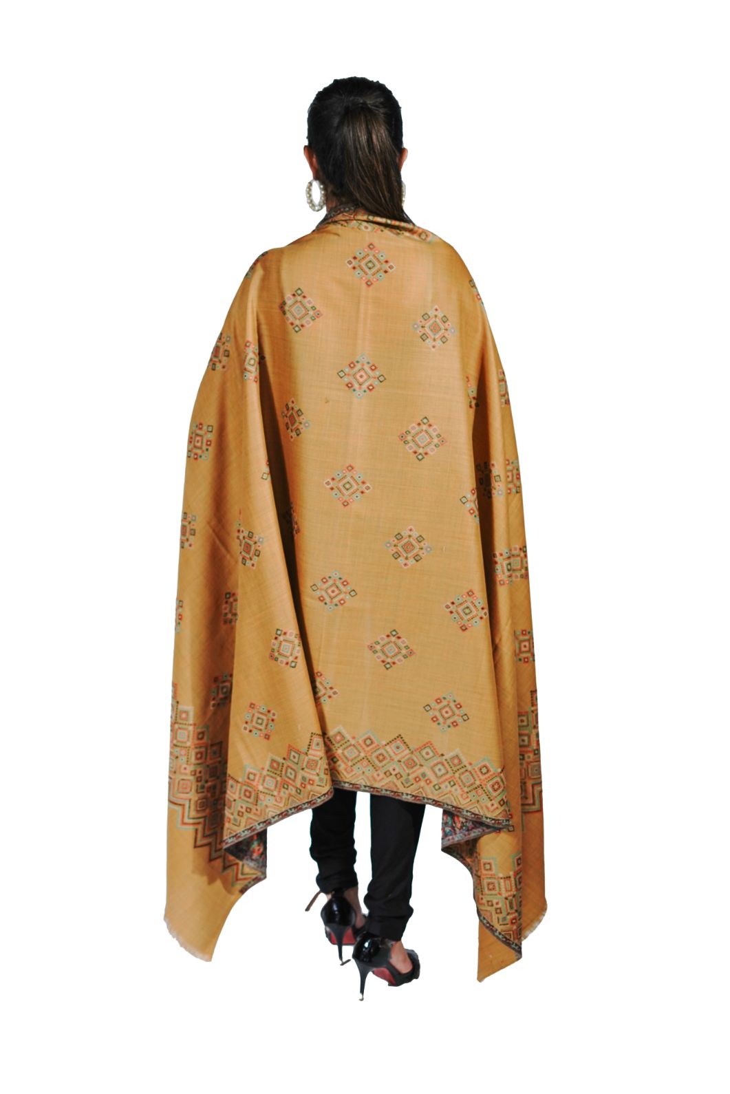 Faux Pashmina Traditional Jamawar Shawl - Rich Caramel Charm