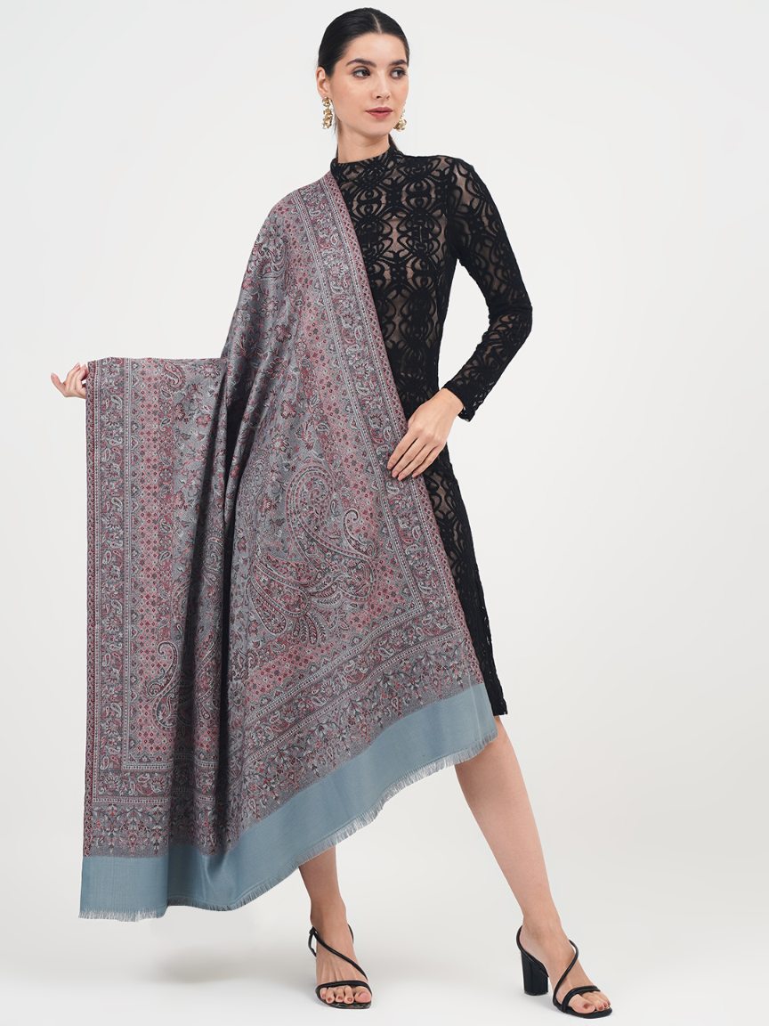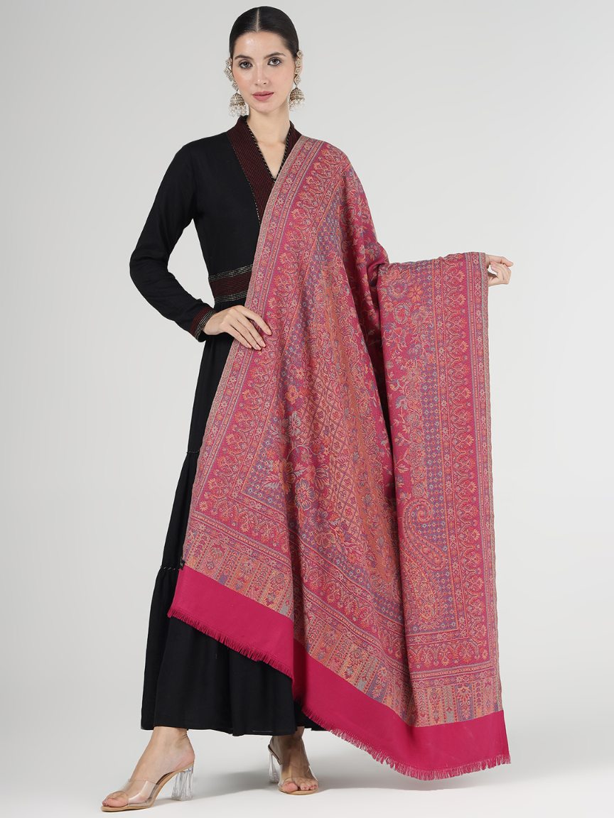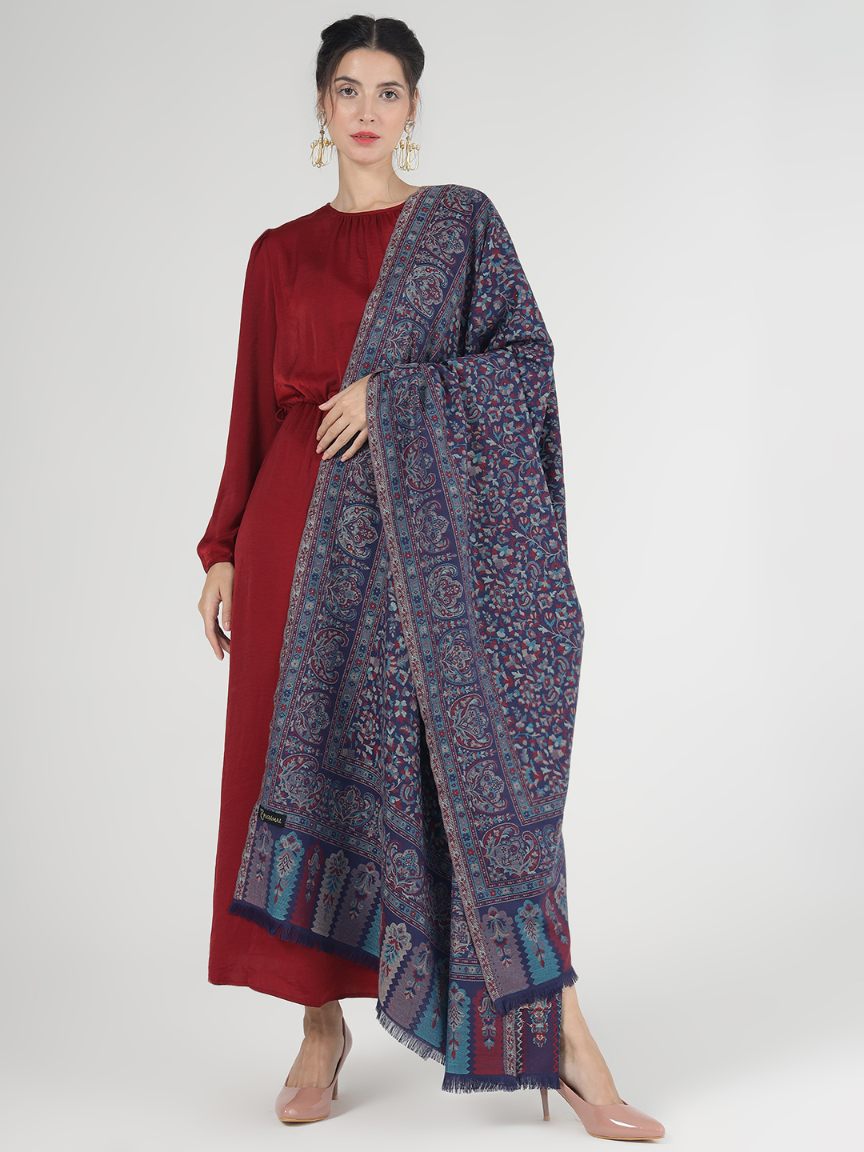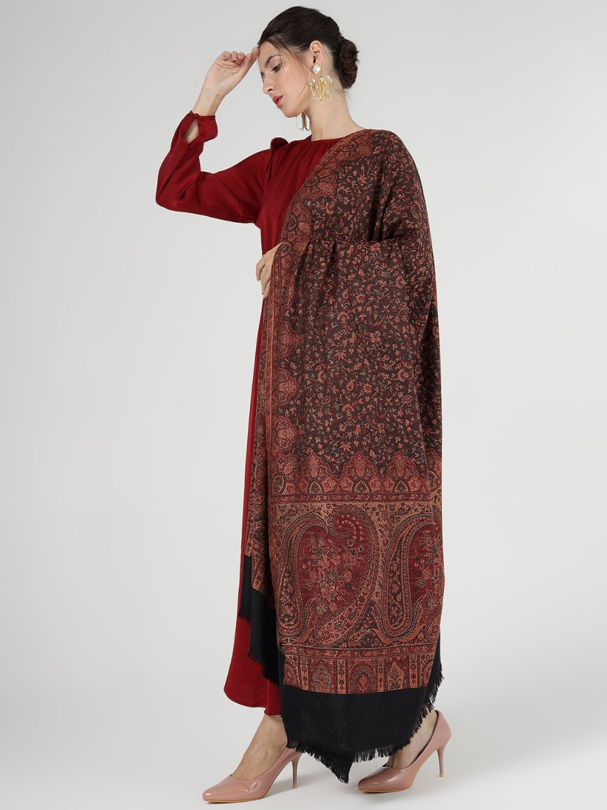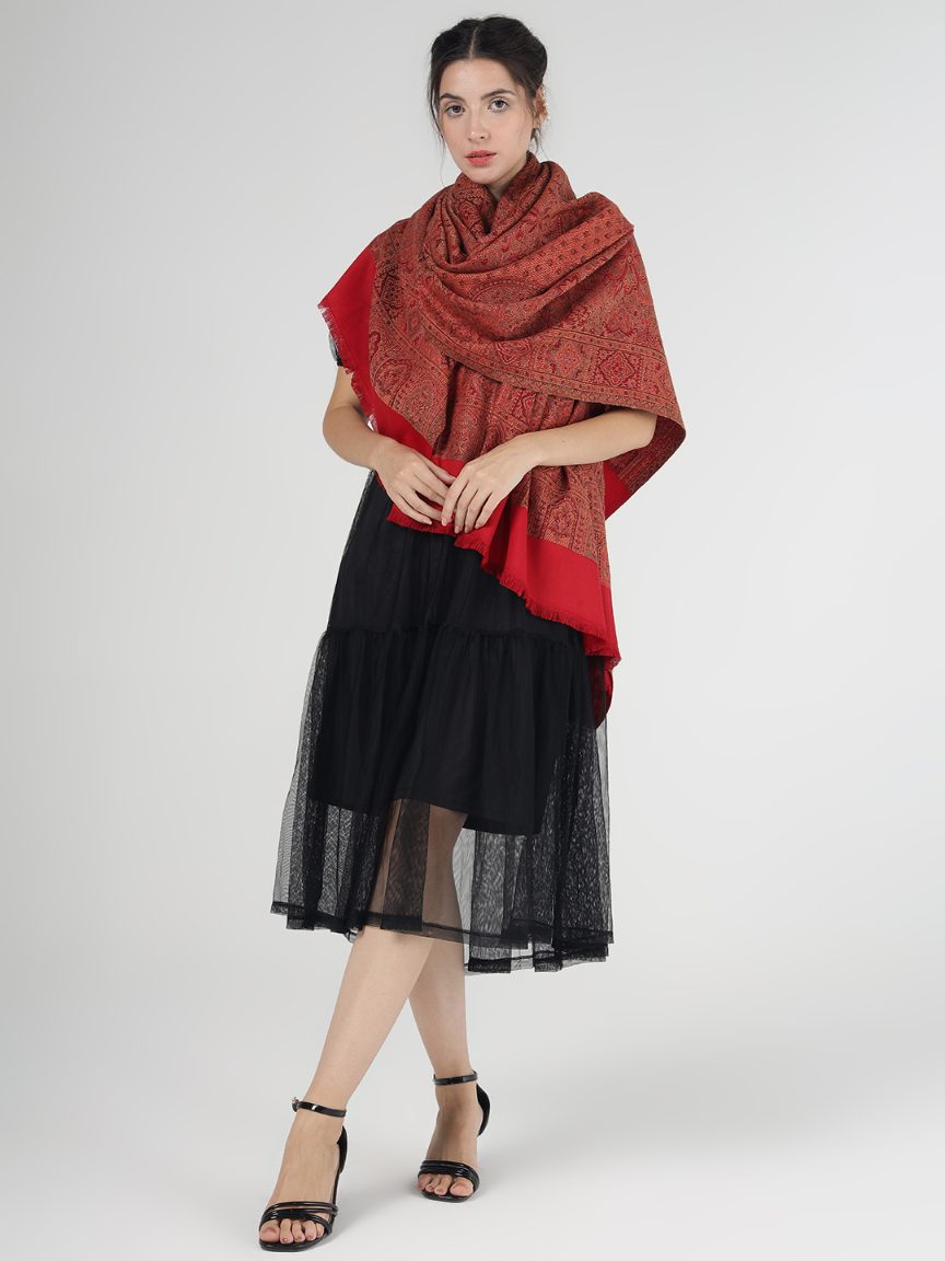 Faux Pashmina Traditional Paisley Jamawar Shawl – Crimson Elegance