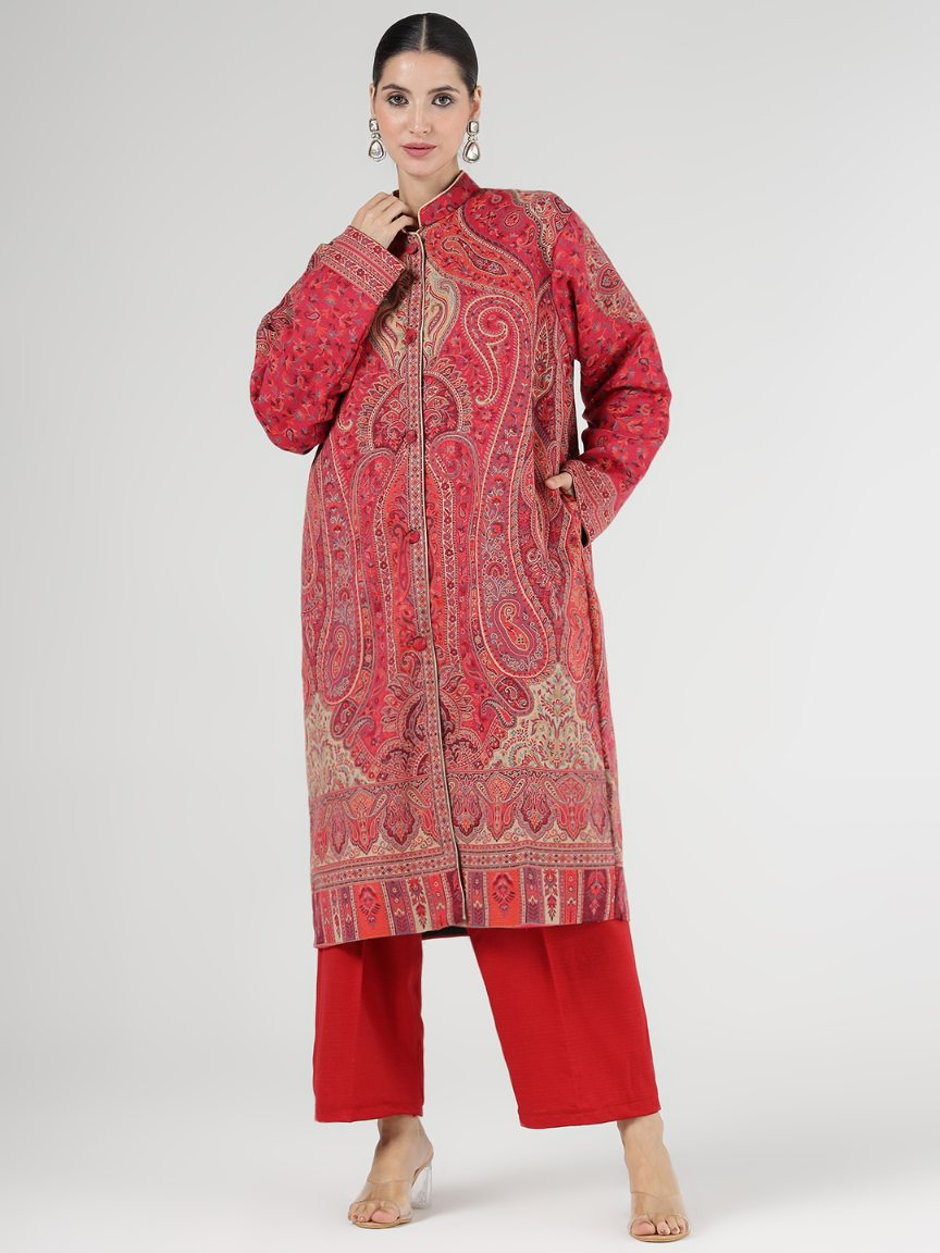 Unstitched Vintage Jamawar Jacket - Crimson Tapestry | Customizable