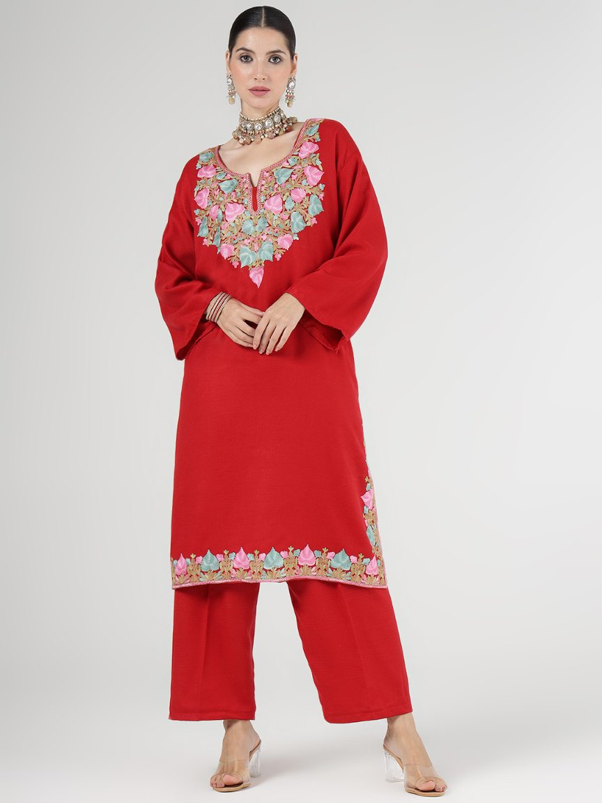 Pashmina Faux Acrylic Phiran Maroon Unstitched Suit for Women