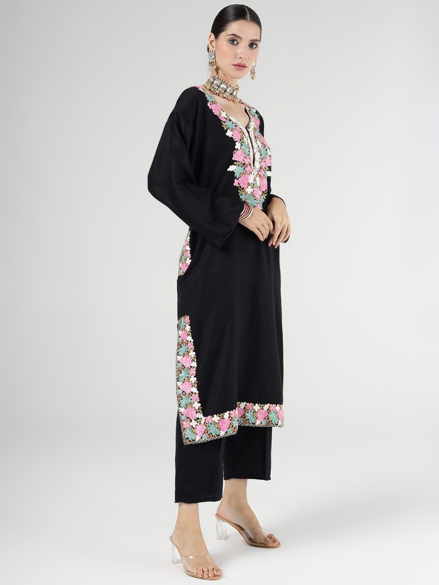 Pashmina Faux Acrylic Phiran Black Unstitched Suit for Women